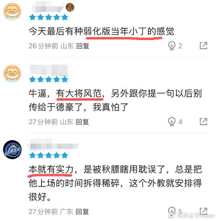 经此一战,邱彪在用人方面也应该做出一些反思和调整了,没有投射的于德豪,轮换顺位不该继续在谢智杰之前了,当然鉴于高诗岩的顶薪和队长身份,他也确实有资格继续成为球队的核心控卫,但谢智杰这一点,邱彪还是应该一视同仁,能者上位。